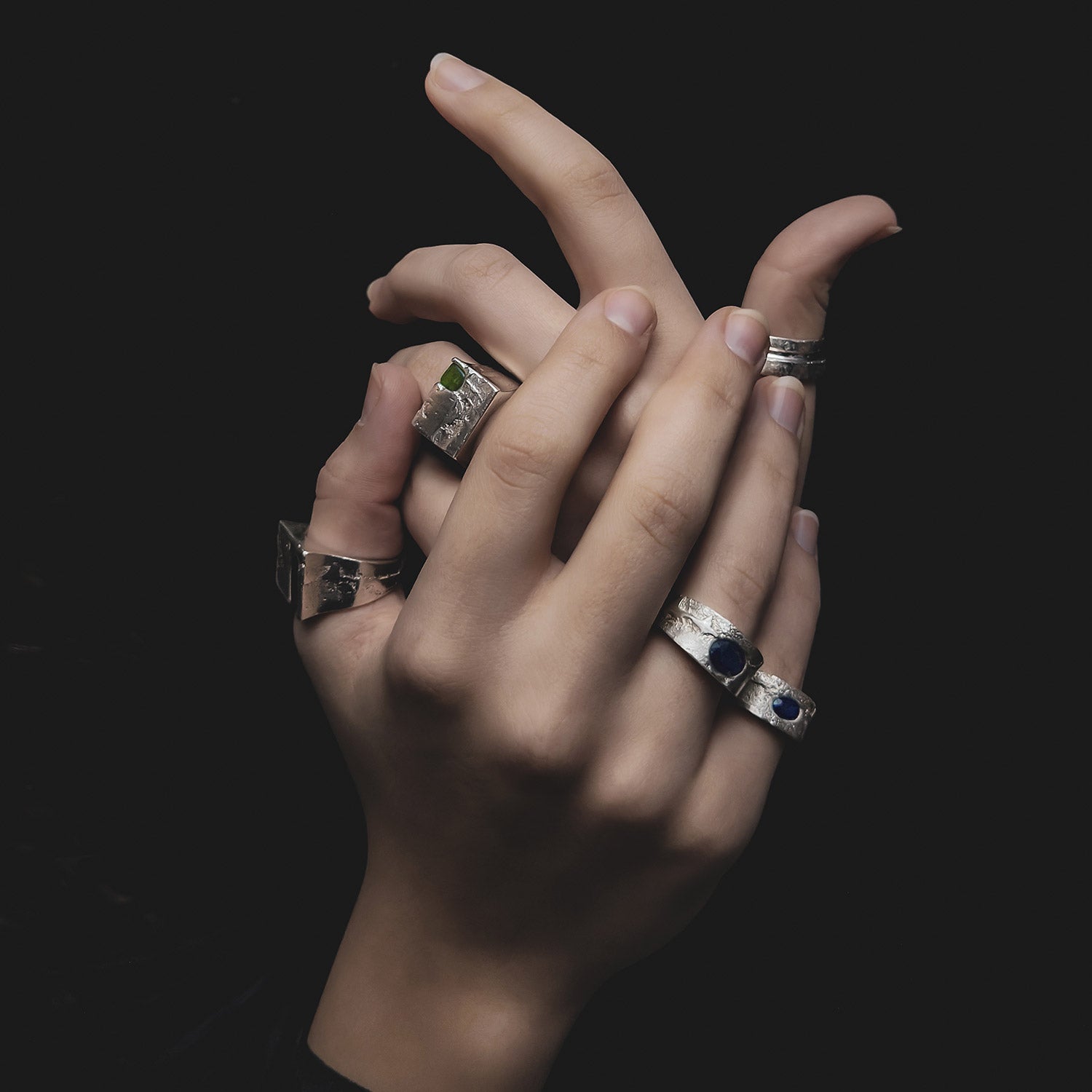 Fragment reflects the pieces that make us whole. The fragments, contrasts, and elements shape who we are. Each ring is a quiet reminder that perfection isn’t the goal, it’s the harmony within our imperfections that gives us strength.